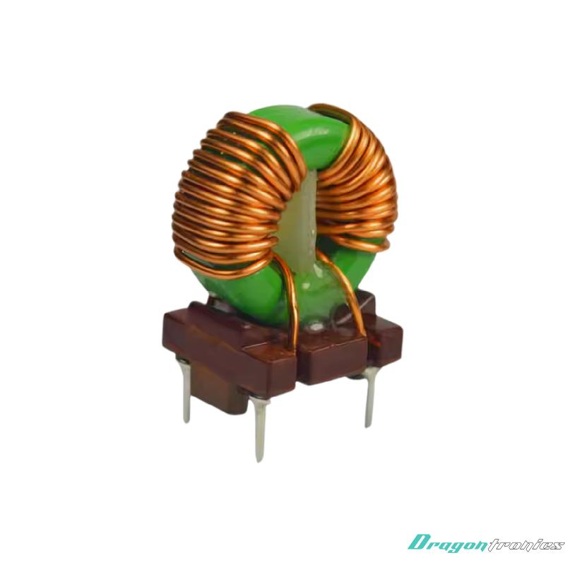o The magnetic ring inductor consists of a coil of wire wound around a magnetic core that is usually made of a ferromagnetic material (like iron, ferrite, or powdered iron). The core is often shaped like a ring or doughnut. This ring shape allows for efficient flux containment, which helps enhance inductance.