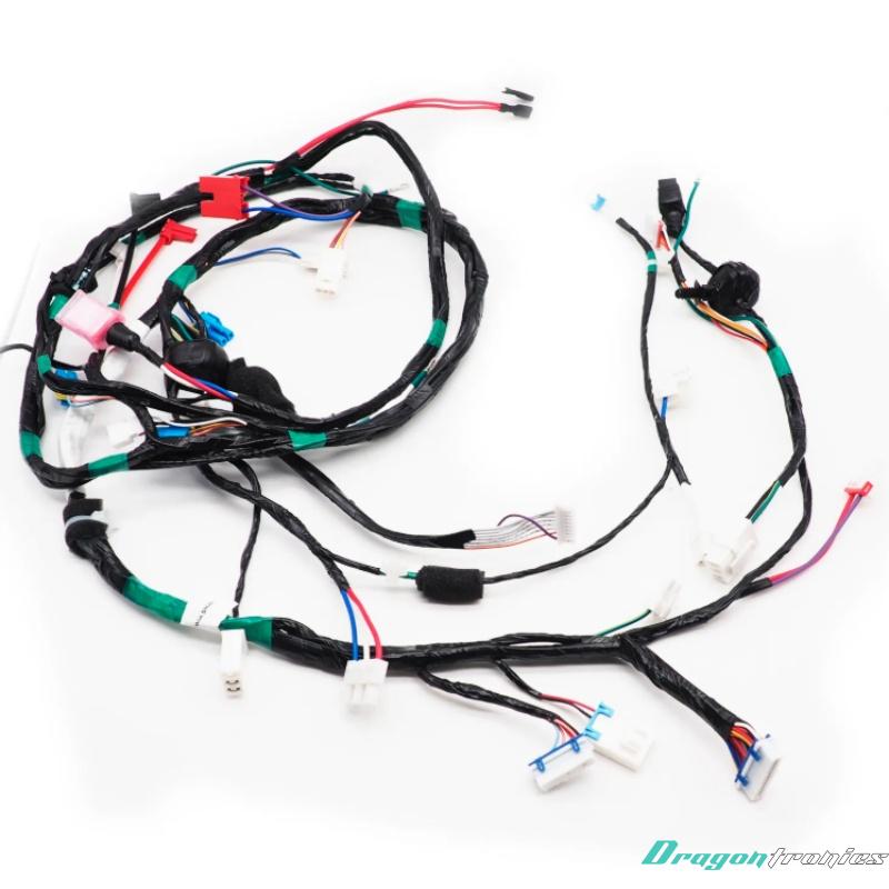 A Main Frame Wire Harness is a comprehensive electrical wiring assembly that connects the primary electrical components and systems of a vehicle (or other machinery, such as motorcycles or industrial equipment) to the main frame. It serves as the central wiring distribution system for power and signal transmission, enabling communication between various electronic systems and components within the vehicle or machine.